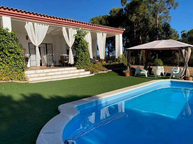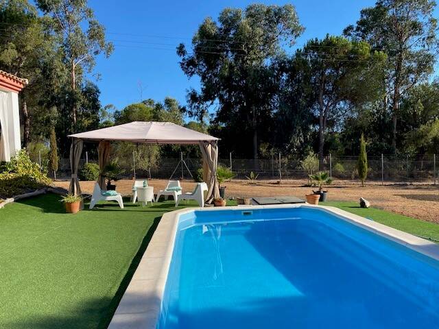 Capacidad para hasta 8 personas. Casa rural, ideal para familias o amigos. A tan solo 6 minutos de El Rompido y en completa zona rural, encontramos esta casa completamente amueblada, con habitación de matrimonio, habitación doble, baño, cocina, salón y enorme jardín. En la terraza encontramos un porche comunicado con la piscina y zona chill out para disfrutar de los días de sol y de las noches veraniegas.