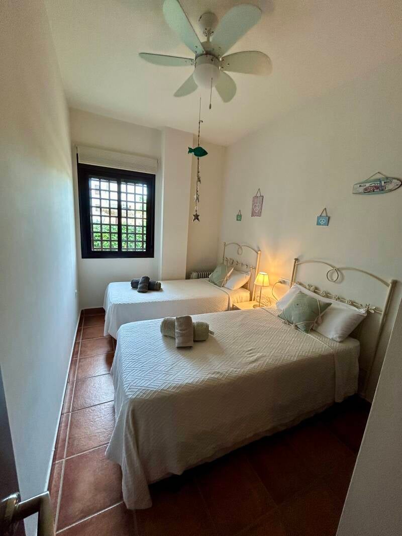 Este alojamiento de capacidad para 4 personas, cuenta con 2 habitaciones, 1 de matrimonio y otra con 2 camas individuales. También encontramos 2 baños completos y un amplio salón y cocina funcional completamente amueblada. El salón comunica con una maravillosa y amplia terraza.