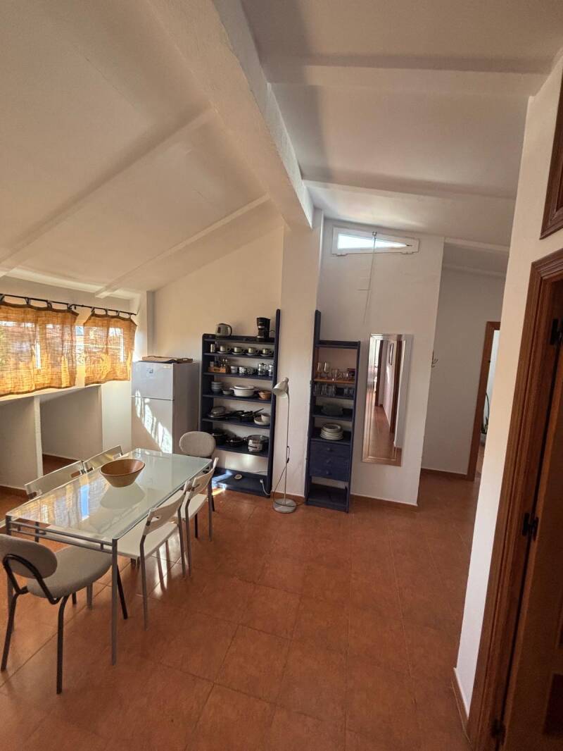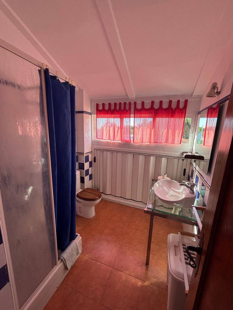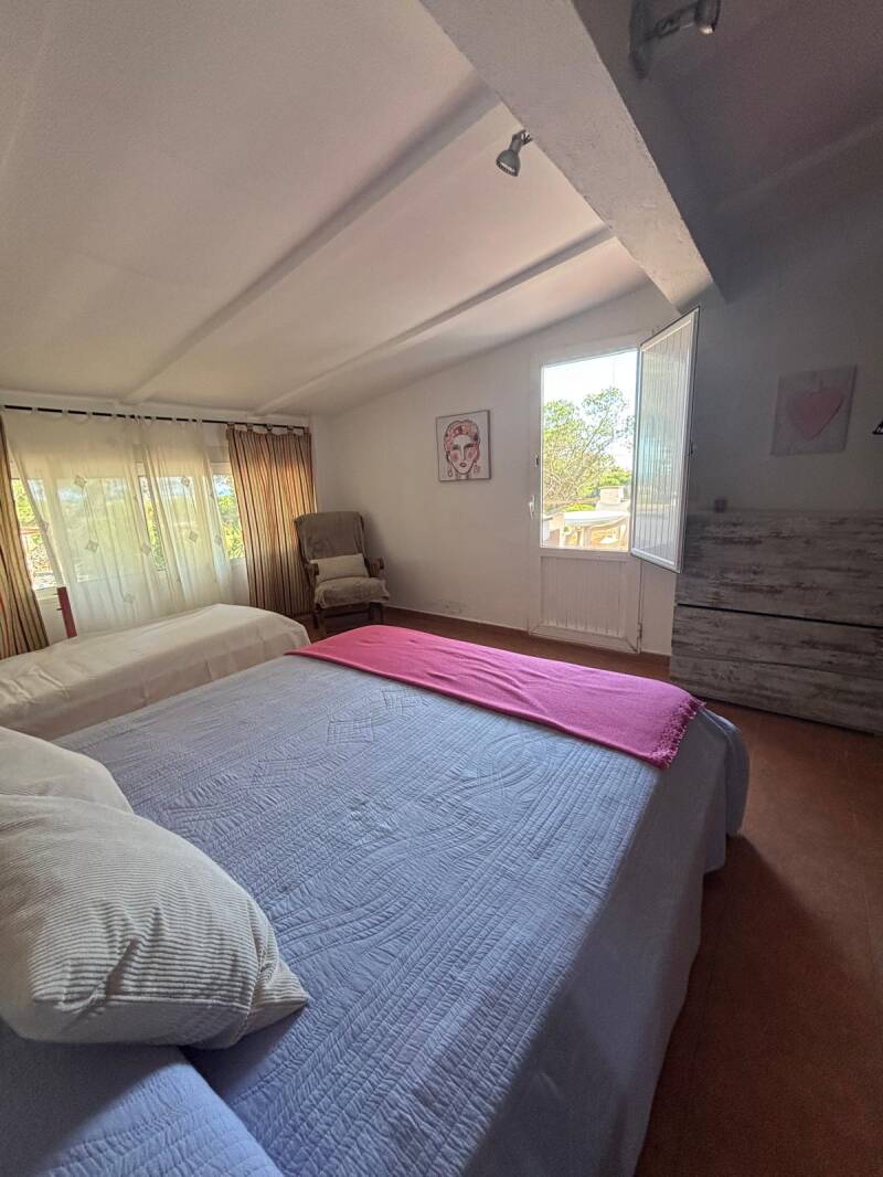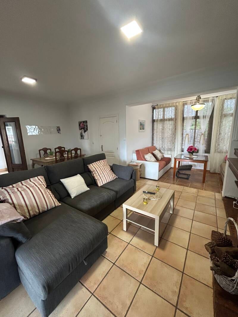 La planta de arriba es otra casa independiente con capacidad para hasta 4-5 personas: salón con todo, cocina completamente amueblada y habitación con cama de matrimonio y cama individual. Además posee un baño completo y 2 terrazas, una conectada con el salón y otra pequeña independiente. El sofá del salón es un sofá cama de gran tamaño.