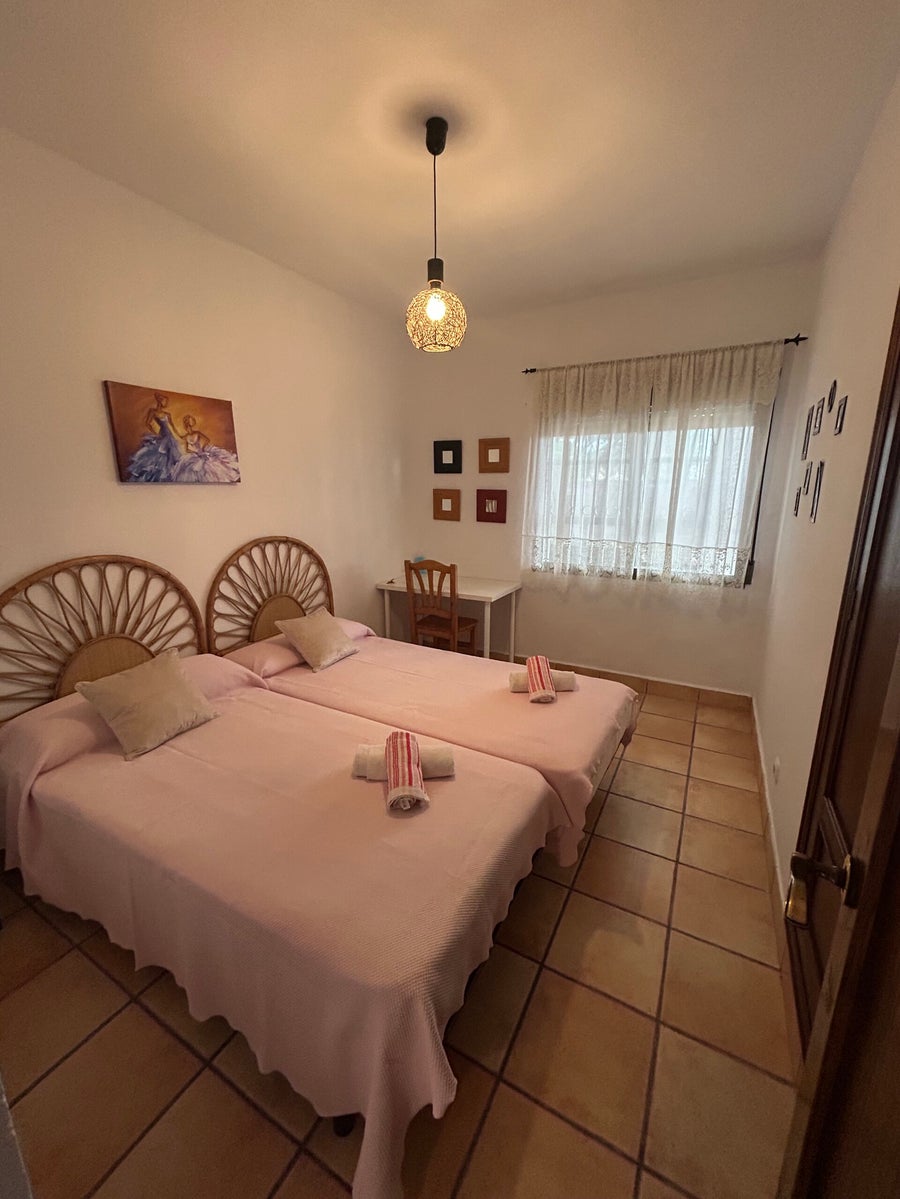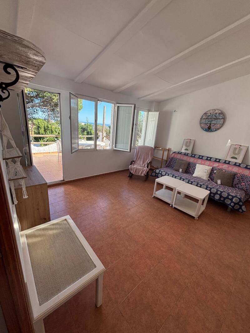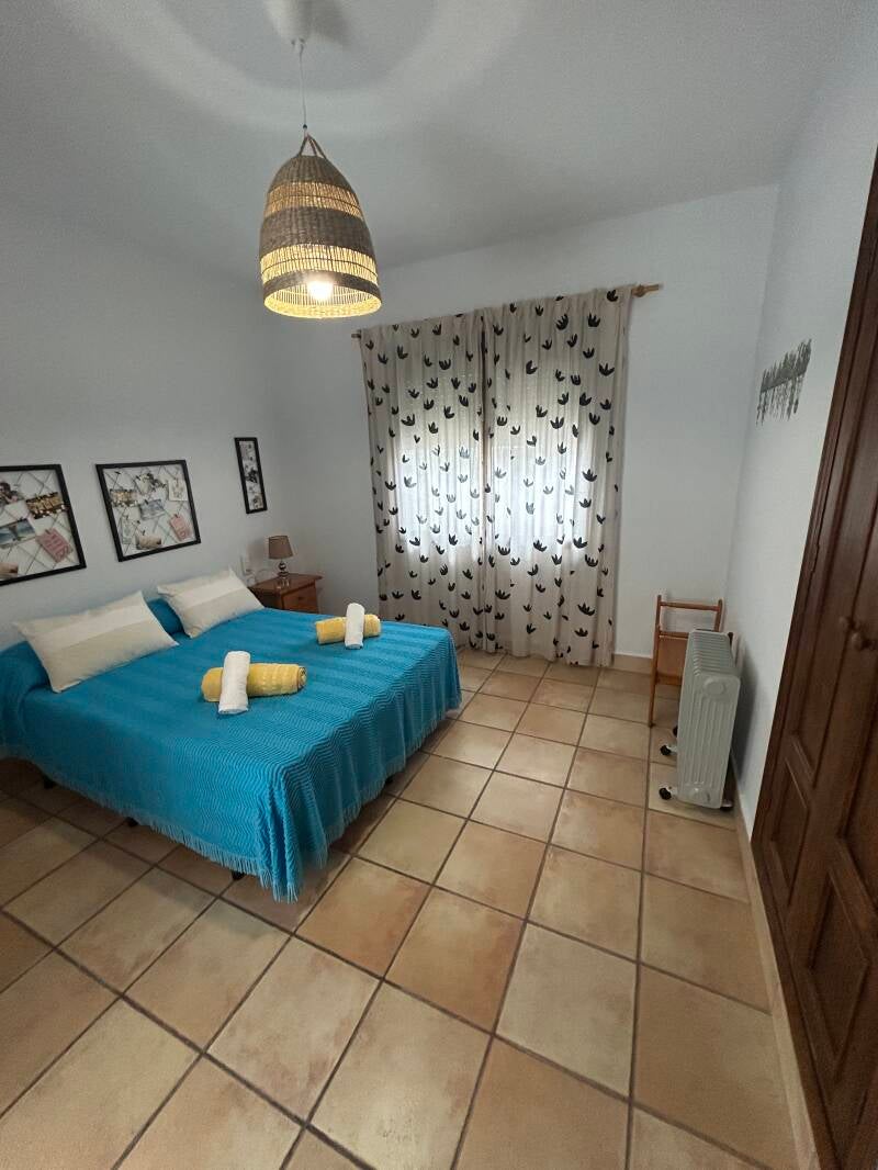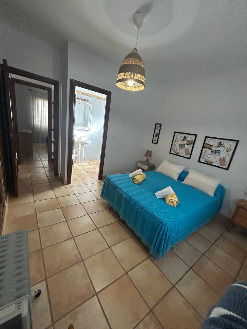 La planta de arriba es otra casa independiente con capacidad para hasta 4-5 personas: salón con todo, cocina completamente amueblada y habitación con cama de matrimonio y cama individual. Además posee un baño completo y 2 terrazas, una conectada con el salón y otra pequeña independiente. El sofá del salón es un sofá cama de gran tamaño.