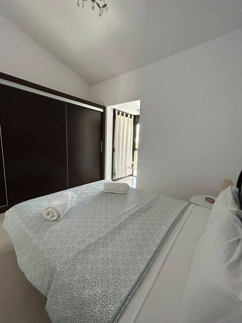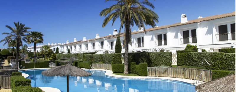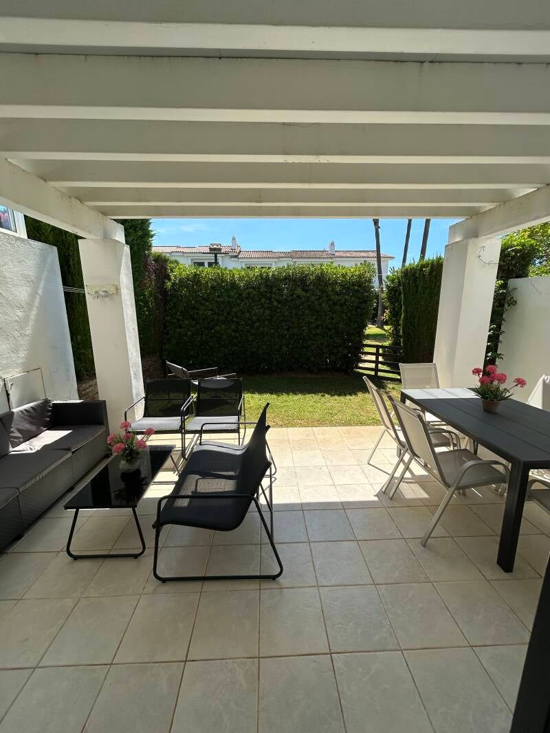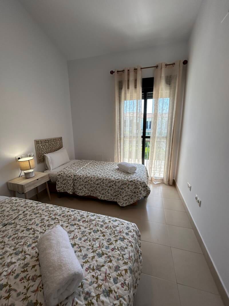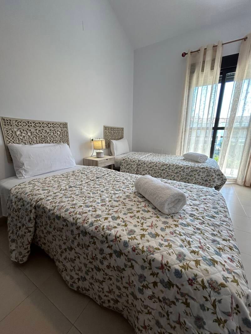 La vivienda cuenta con dos plantas: en la planta baja encontramos un salón comedor comunicado con una bonita terraza que da el acceso a jardines y zonas comunes, la cocina completamente equipada y un baño completo. La planta superior consta de tres habitaciones, una con cama doble, dos con camas pequeñas, dos baños completos (uno de ellos en suit).