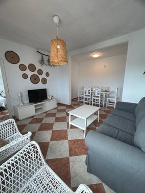 Capacidad para hasta 6 personas. Chalet con dos apartamentos totalmente independiente en tercera línea de la playa de La Antilla. El apartamento situado en la planta alta, está compuesto por tres habitaciones, uno con cama de matrimonio y dos con camas dobles, un baño en suite y otro común ambos completos, un patio trasero y una gran terraza delantera con grandes vistas.