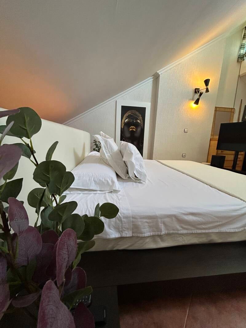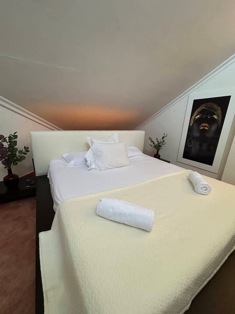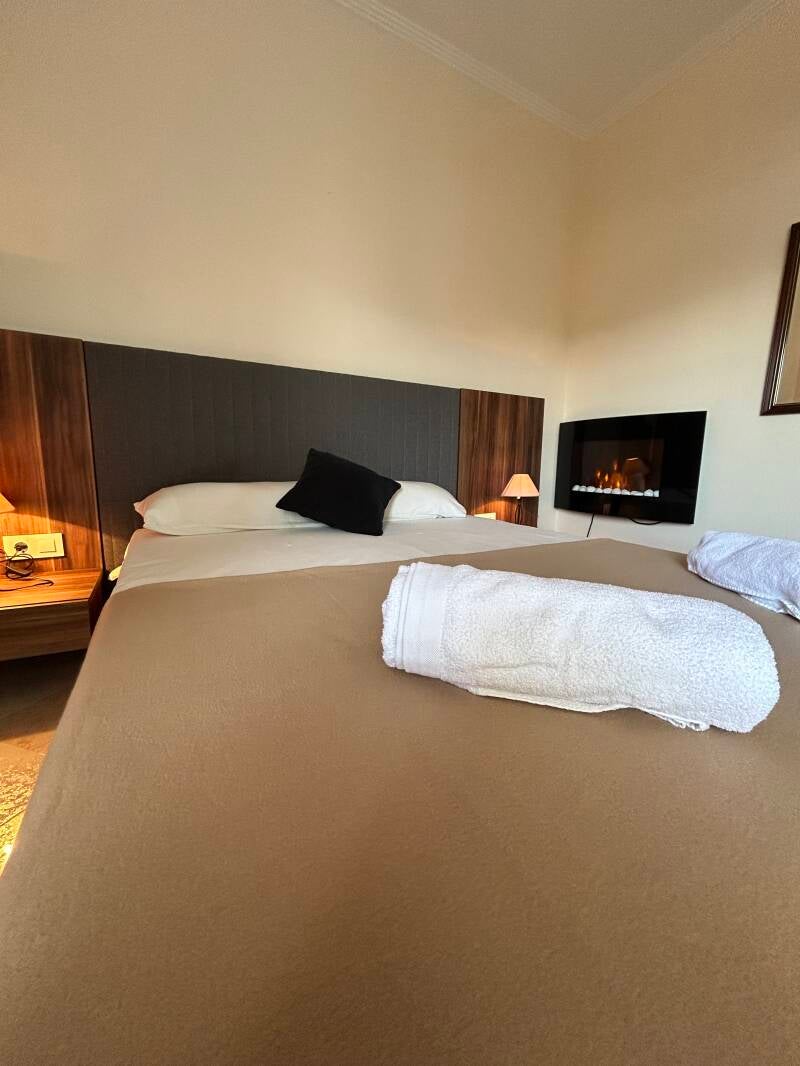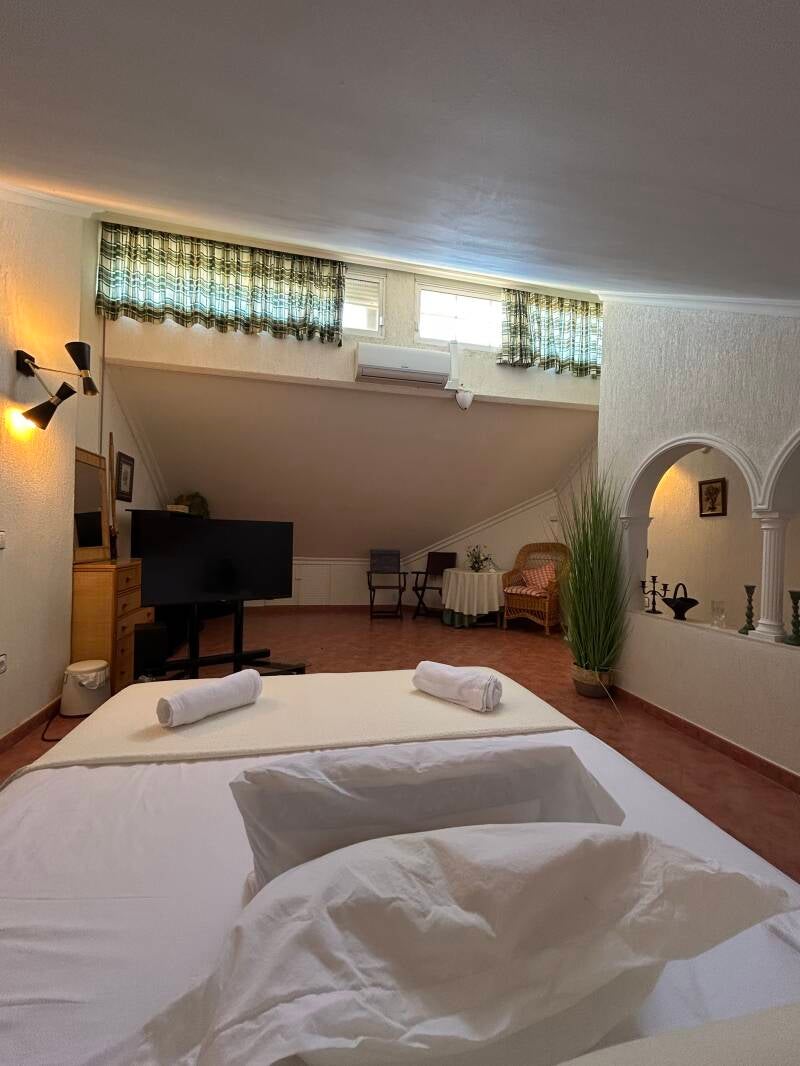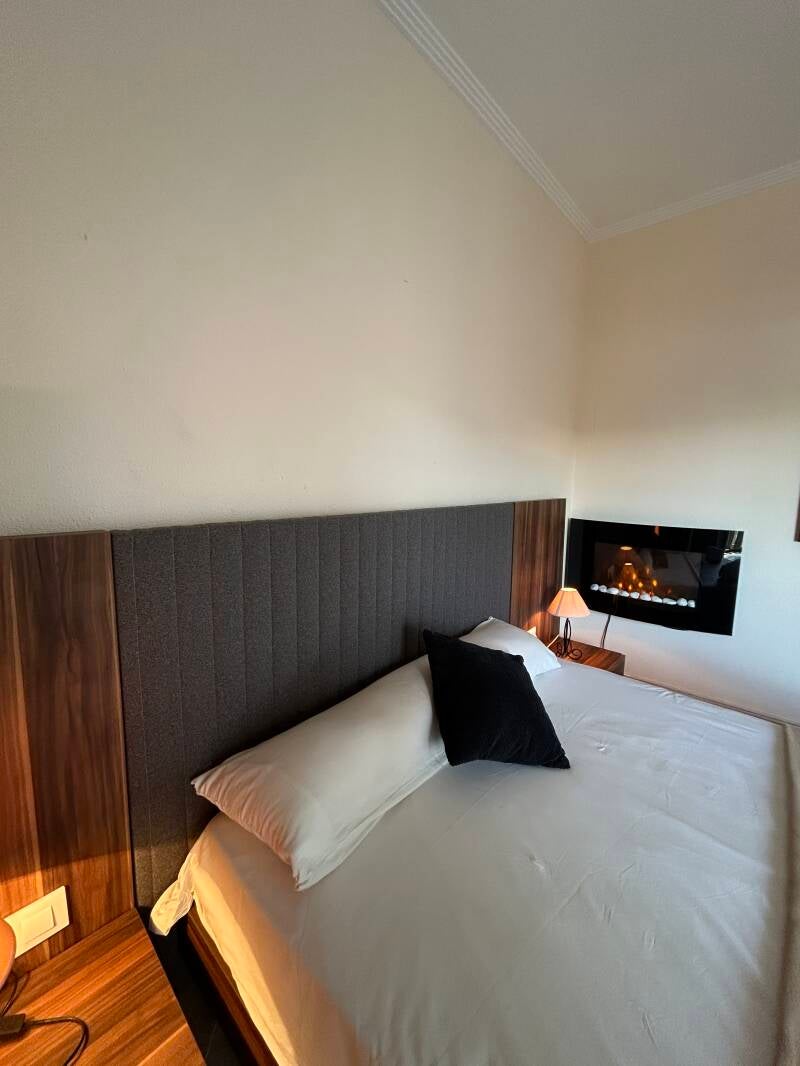 En la tercera y última planta nos topamos con el ático reconvertido en una habitación enorme, amplia y luminosa, con una impresionante cama de 2x2, otra estufa simulador de chimenea y aire acondicionado.