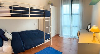 La casa consta de dos plantas, distribuidas de la siguiente manera: la planta baja consta de un porche delantero amplio y elegante, a continuación nos topamos con un aseo completo, un luminoso y amplio salón con televisión y mobiliario, amplia cocina funcional y amueblada que comunica con la terraza trasera abierta al jardín y zona comunitaria. En segundo lugar y en planta superior, encontramos un segundo baño, este mucho más amplio y comunicado con las tres habitaciones, la primera de matrimonio, la segunda también con cama de matrimonio y la tercera con litera de dos camas individuales.
